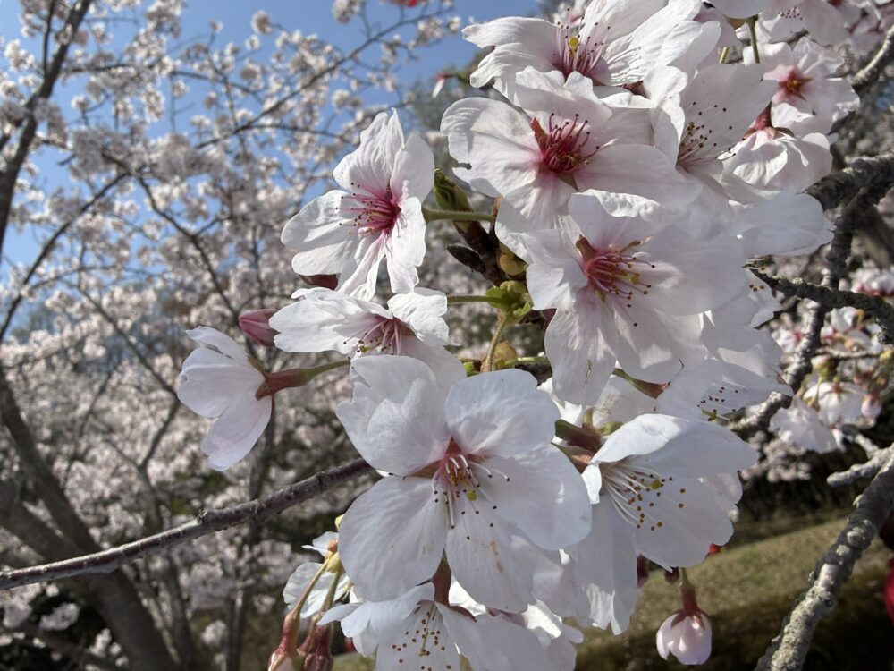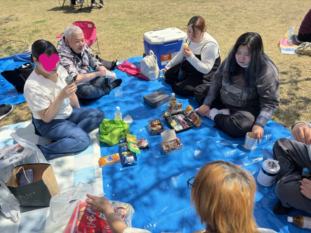 お弁当・おやつを持って🌸桜🌸の下でいただきました。食後には屋台でフライドポテトやアイス、牛串を買って食べられている方もいました。