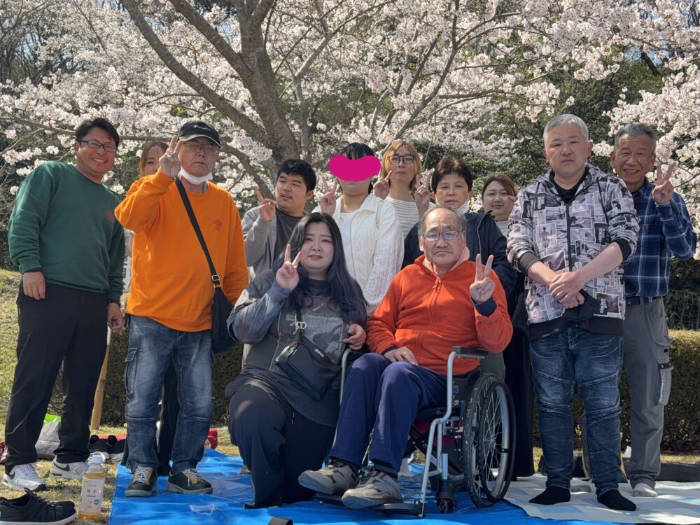 利用者様とお弁当を持って、玉野市の深山公園に桜の花見に行ってきました。